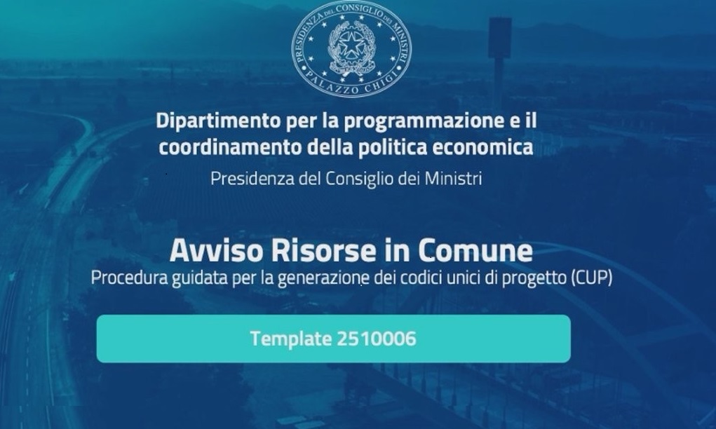 È disponibile online il video tutorial dedicato alla procedura guidata di generazione del Codice Unico di Progetto (CUP) tramite il template 2510006, predisposto per l’Avviso pubblico “Risorse in Comune” del Dipartimento della funzione pubblica